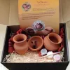 До складу розширеного набору входять: - зменшені репліки посуду (два глечики та мисочка), які створені з обпаленої глини; - контейнери з білою, чорню й червоною акриловими фарбами та пензлик із вовни білки; - буклет з описом традиційних трипільських орнаментів і символів, а також з фото зразків розпису; - іграшка-амулет, що зображує маленьке звірятко; - упаковка, яка включає картонну коробку, дерев'яну стружку для збереження глиняного посуду при транспортуванні.