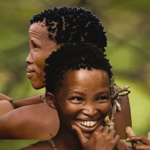 Це люди сан, або, як їх ще до недавніх часів називали європейці, — бушмени. Сан є носіями найдавнішого етнотипу і є найдревнішим народом планети, що дожив до сьогодення без особливих змін. І це не заважає їм бути вельми скромними людьми, хоча могли б оголосити себе старшим братом всіх людей світу, адже вік, коли генетичні шляхи предків народу сан та предків решти людства розійшлись, це шістдесят тисяч років тому, а найстаріші, відомі аналоги інструментів, якими й досі користуються ці люди, з’явились майже сорок п’ять тисяч років тому.