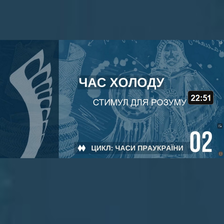 Нові технології полегшують полювання і породжують спеціалізацію мисливських родів. Але прихід Великого зледеніння стає важким іспитом для праукраїнців. Разом з тим, труднощі стимулюють розвиток мислення: з’являються перші календарі і мапи. Постає архетип Матері Світу і фігура охоронця роду — шамана, яка уособлює архетип взаємодії людини з невідомим.